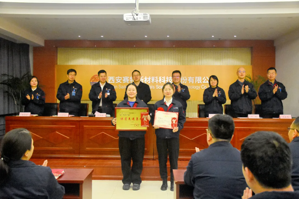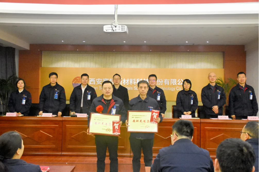 歲序更新,華章日新。1月23日,公司2024年度表彰大會(huì)暨迎新春年會(huì)在二樓報(bào)告廳隆重舉行。西北有色金屬研究院副院長張于勝,賽特公司經(jīng)營層,中層干部、職工代表及受表彰的集體和個(gè)人參加了會(huì)議。會(huì)議由楊曉康董事長主持。