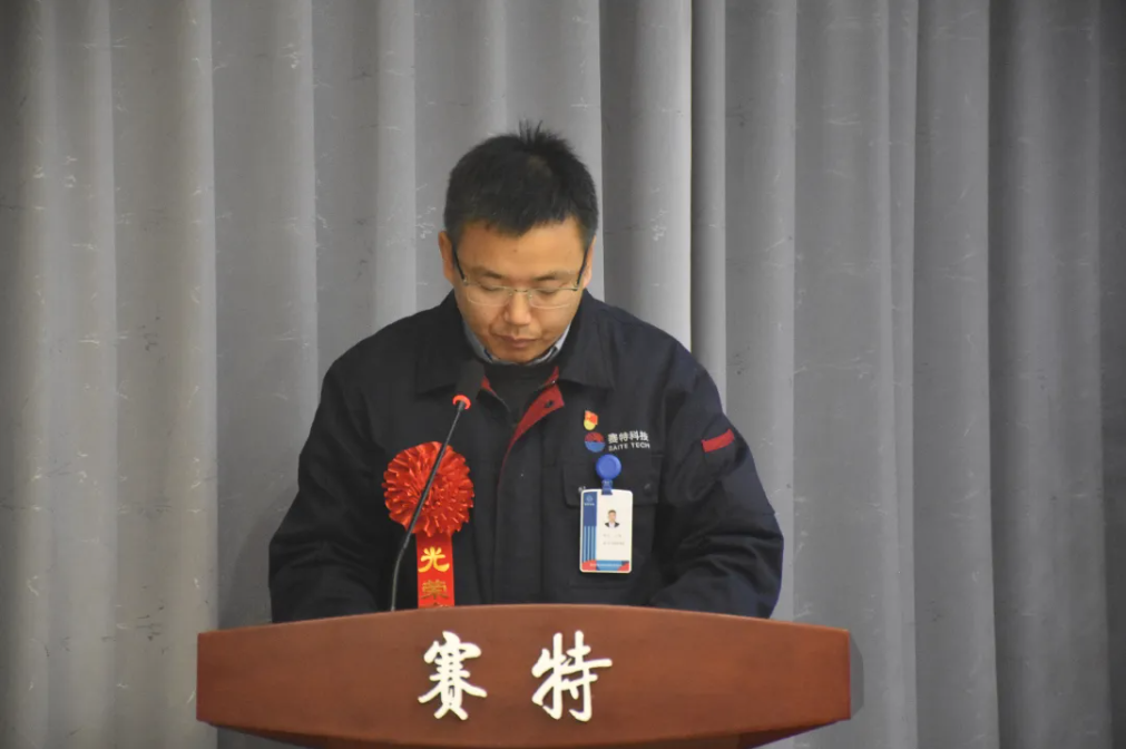 上午10時(shí),賽特公司2024年度表彰大會(huì)在雄壯的國歌聲中正式拉開序幕。白新房總經(jīng)理宣讀表彰決定,表彰了2024年度取得突出成績的先進(jìn)集體3個(gè),優(yōu)秀干部4名、先進(jìn)個(gè)人25名、質(zhì)量先進(jìn)集體2個(gè)、質(zhì)量先進(jìn)個(gè)人5名、保密先進(jìn)集體1個(gè)、保密先進(jìn)個(gè)人1名,安環(huán)先進(jìn)集體2個(gè),安環(huán)先進(jìn)個(gè)人4名以及最佳新人7名。